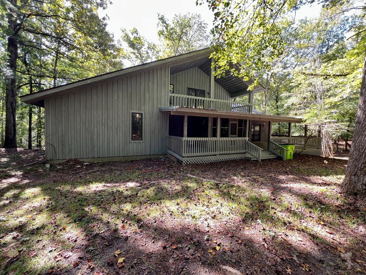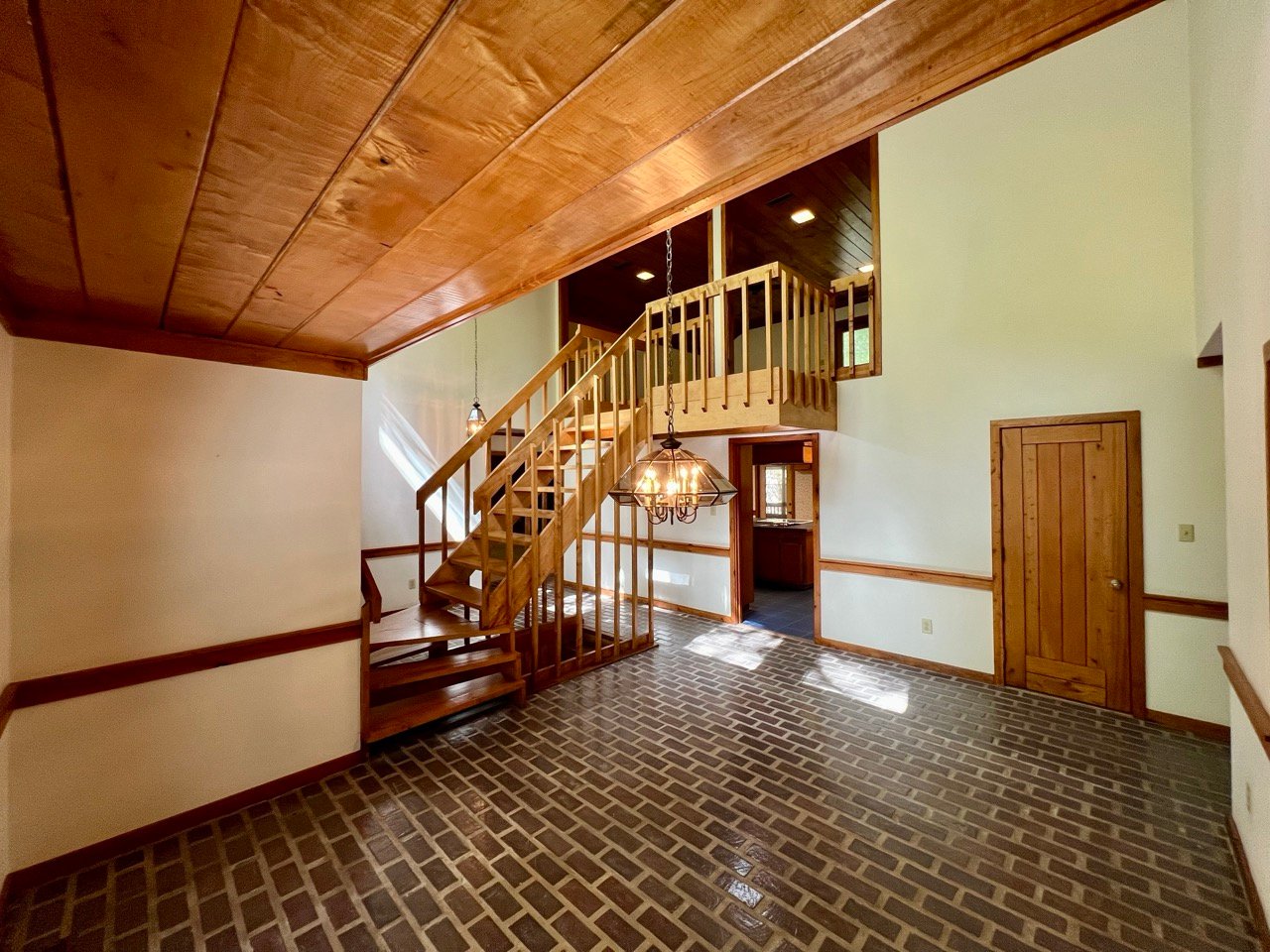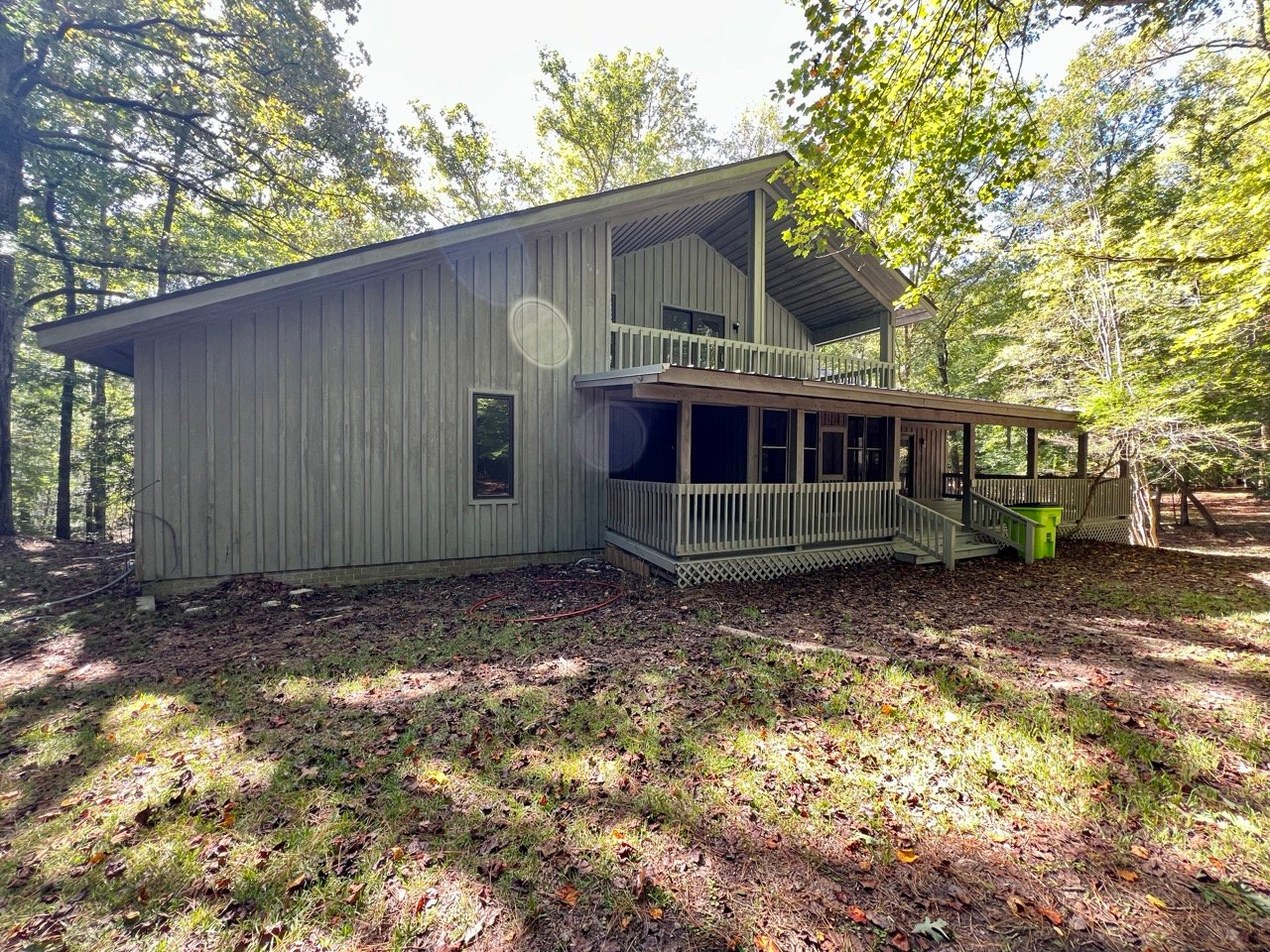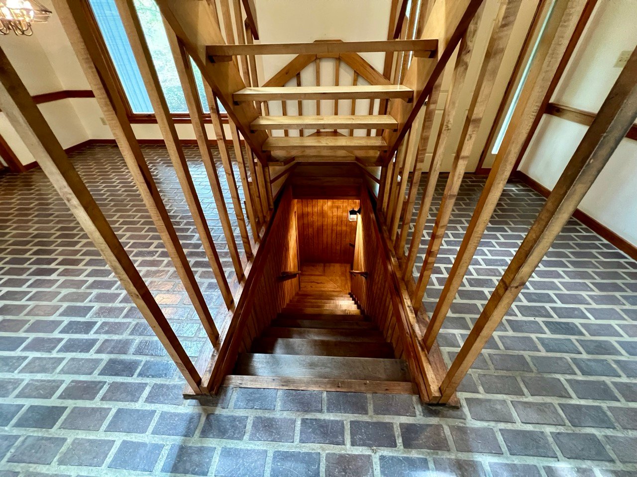 Unmatched opportunity here at 443 Gatewood Dr. upon entering you are greeted by over 5 acres of mature trees along with rolling hills. Following the circle drive around you will find a stunning 1983 two story home with a partially finished basement, totaling just over 4000 square feet. Parking is a breeze with a 3 car garage underneath the house with a fourth just outside the main wall. As you enter the home you are welcomed by a vaulted ceiling covered in timeless wood along with natural wooden steps leading to the second floor. Just around the corner you will find craftsmanship at its finest with a one of a kind 6 sided fireplace to stay nice and cozy on those cool evenings. The living room also has solid wood built-ins along two walls and a vaulted solid wood ceiling with a breath taking view in all directions. Rest anytime on the back covered deck with a sweeping panoramic view and enjoy all that nature has to offer. Daily cooking and entertaining are made easy with a large kitchen island equipped with a full stove on one side and a full cook top on the other. Storage is no question with a walk in pantry. Passing through the dining room where meals become memories to head upstairs to a great room for a great view. Enjoy an escape from the rush of today on the private balcony over looking the secluded yet accessible property. Retire for the evening to the master suite on the rear of the house with large closets and a full private bathroom. The other two bedrooms on the main floor are joined by a full bathroom with a custom spiral staircase between them from the hall side that leads to the basement. Heading back through the dining room down to the basement you will be greeted by a large bonus room with a flex room and office connected to it. The basement also features a full bathroom making the space a true canvas for your masterpiece.Access the workshop from the finished basement. Keep your tools and crafts safe and dry.