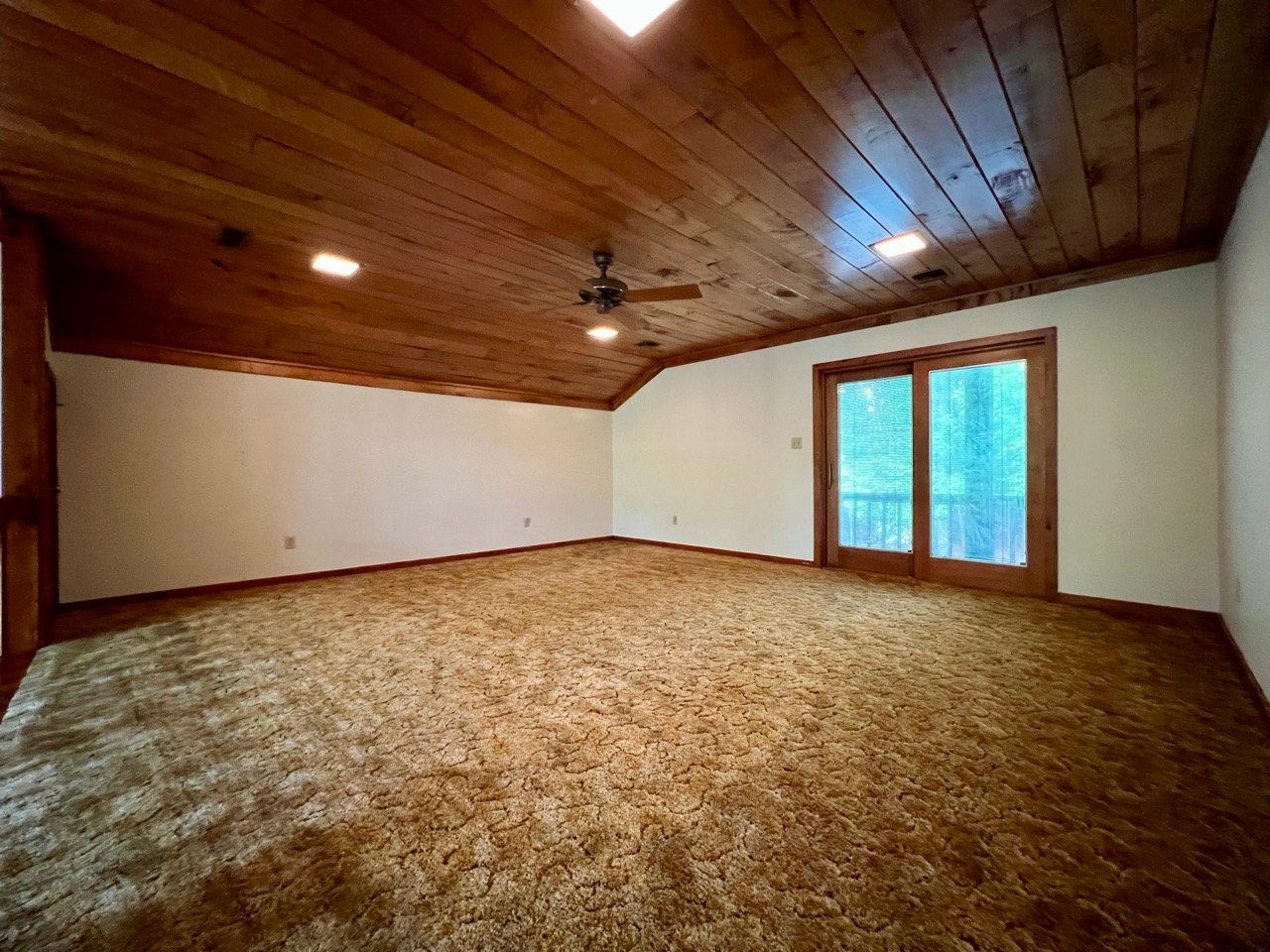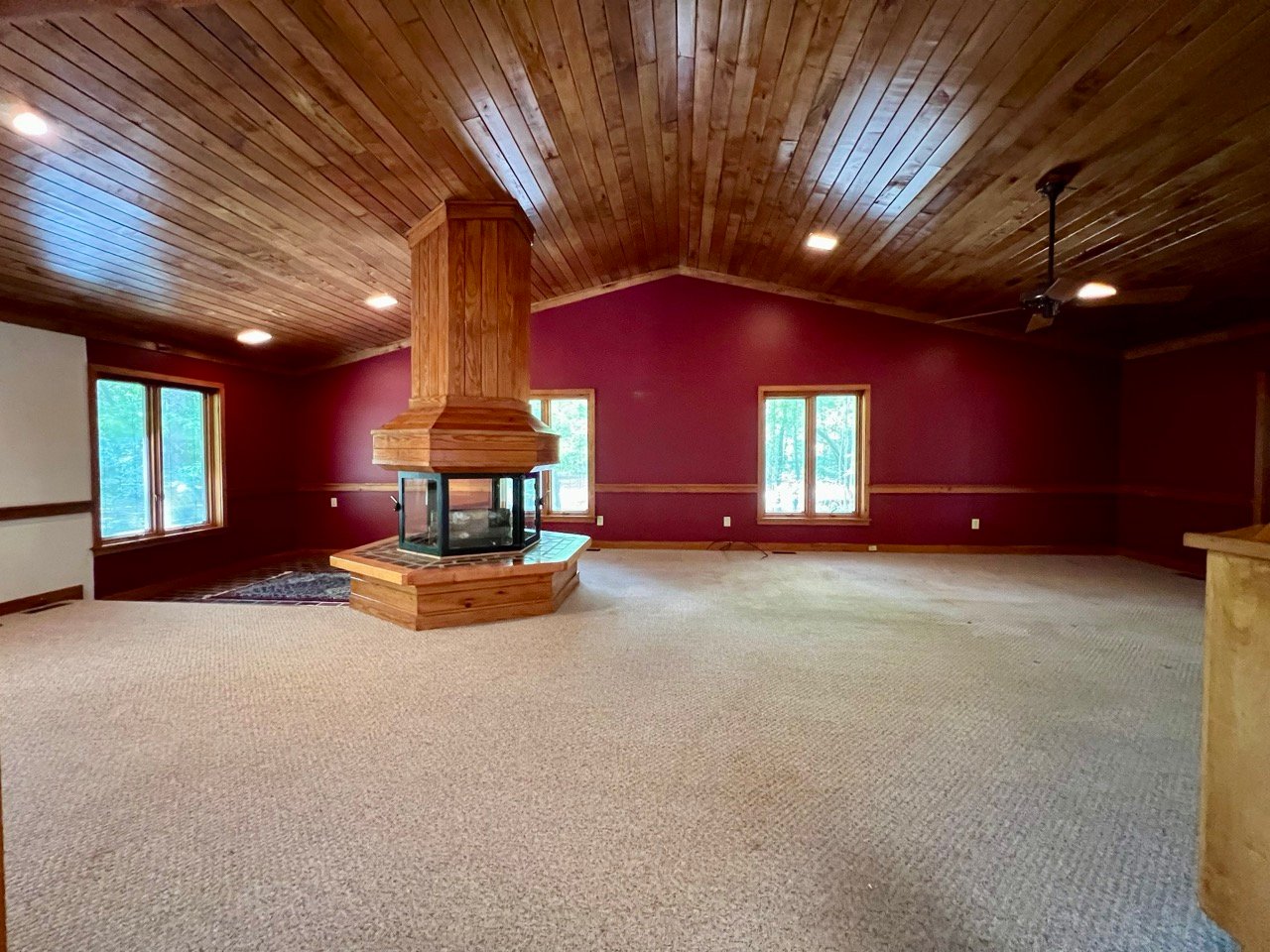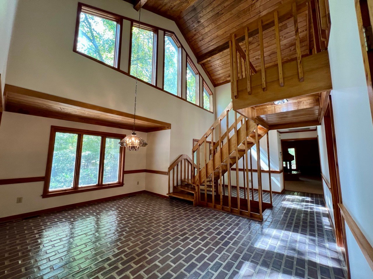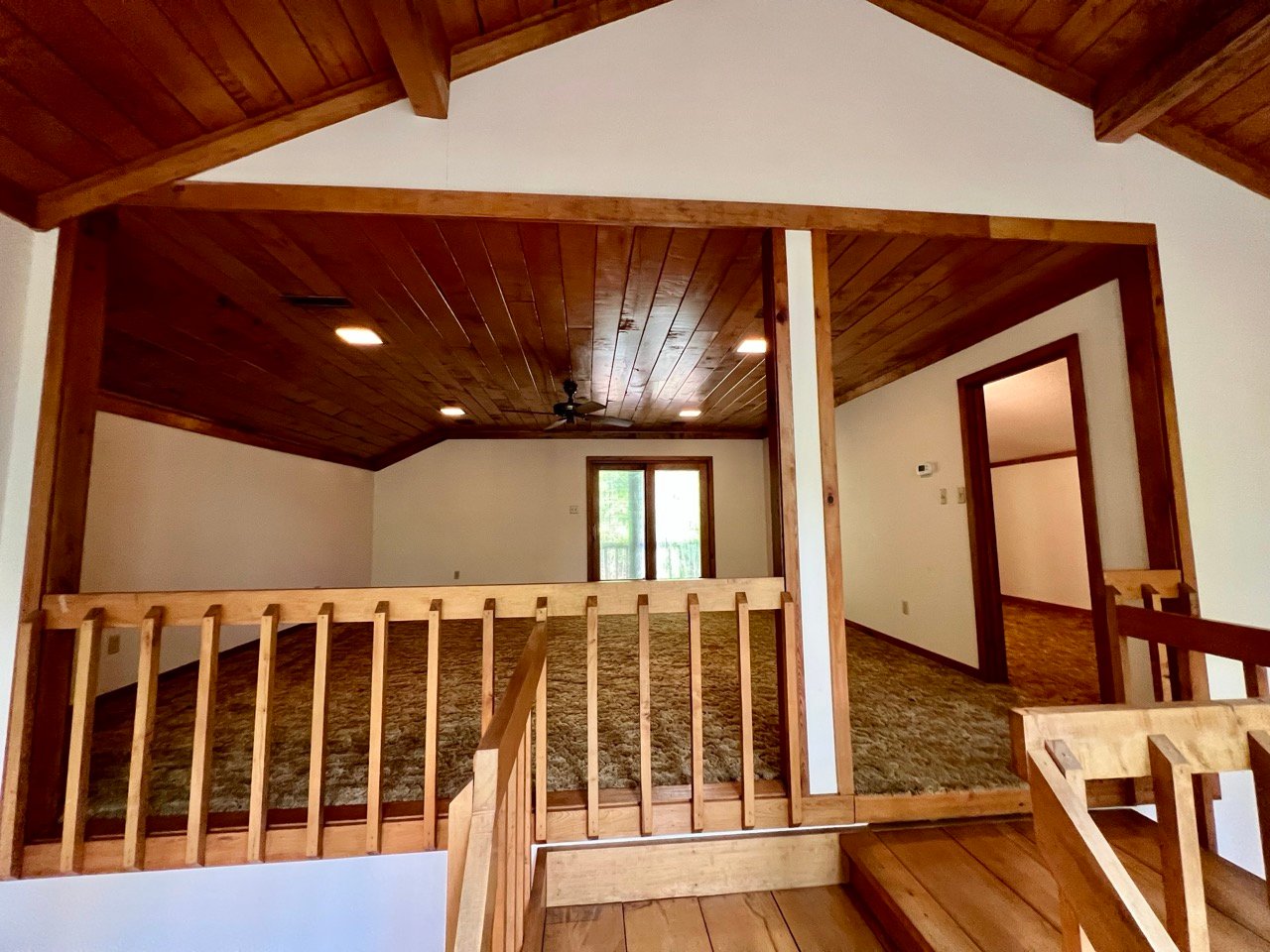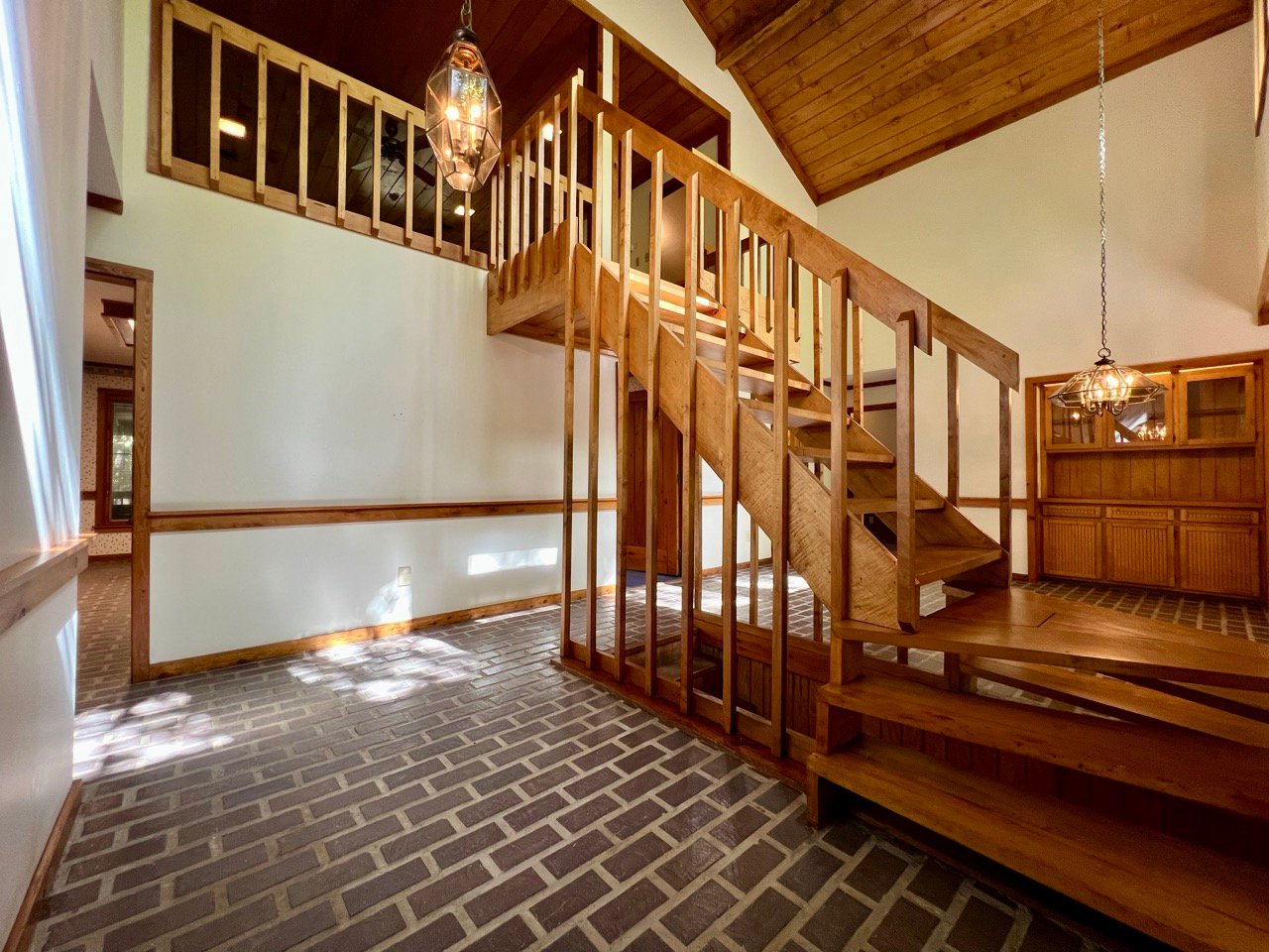 Unmatched opportunity here at 443 Gatewood Dr. upon entering you are greeted by over 5 acres of mature trees along with rolling hills. Following the circle drive around you will find a stunning 1983 two story home with a partially finished basement, totaling just over 4000 square feet. Parking is a breeze with a 3 car garage underneath the house with a fourth just outside the main wall. As you enter the home you are welcomed by a vaulted ceiling covered in timeless wood along with natural wooden steps leading to the second floor. Just around the corner you will find craftsmanship at its finest with a one of a kind 6 sided fireplace to stay nice and cozy on those cool evenings. The living room also has solid wood built-ins along two walls and a vaulted solid wood ceiling with a breath taking view in all directions. Rest anytime on the back covered deck with a sweeping panoramic view and enjoy all that nature has to offer. Daily cooking and entertaining are made easy with a large kitchen island equipped with a full stove on one side and a full cook top on the other. Storage is no question with a walk in pantry. Passing through the dining room where meals become memories to head upstairs to a great room for a great view. Enjoy an escape from the rush of today on the private balcony over looking the secluded yet accessible property. Retire for the evening to the master suite on the rear of the house with large closets and a full private bathroom. The other two bedrooms on the main floor are joined by a full bathroom with a custom spiral staircase between them from the hall side that leads to the basement. Heading back through the dining room down to the basement you will be greeted by a large bonus room with a flex room and office connected to it. The basement also features a full bathroom making the space a true canvas for your masterpiece.Access the workshop from the finished basement. Keep your tools and crafts safe and dry.