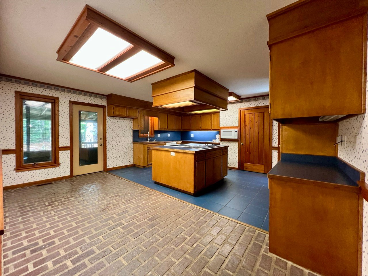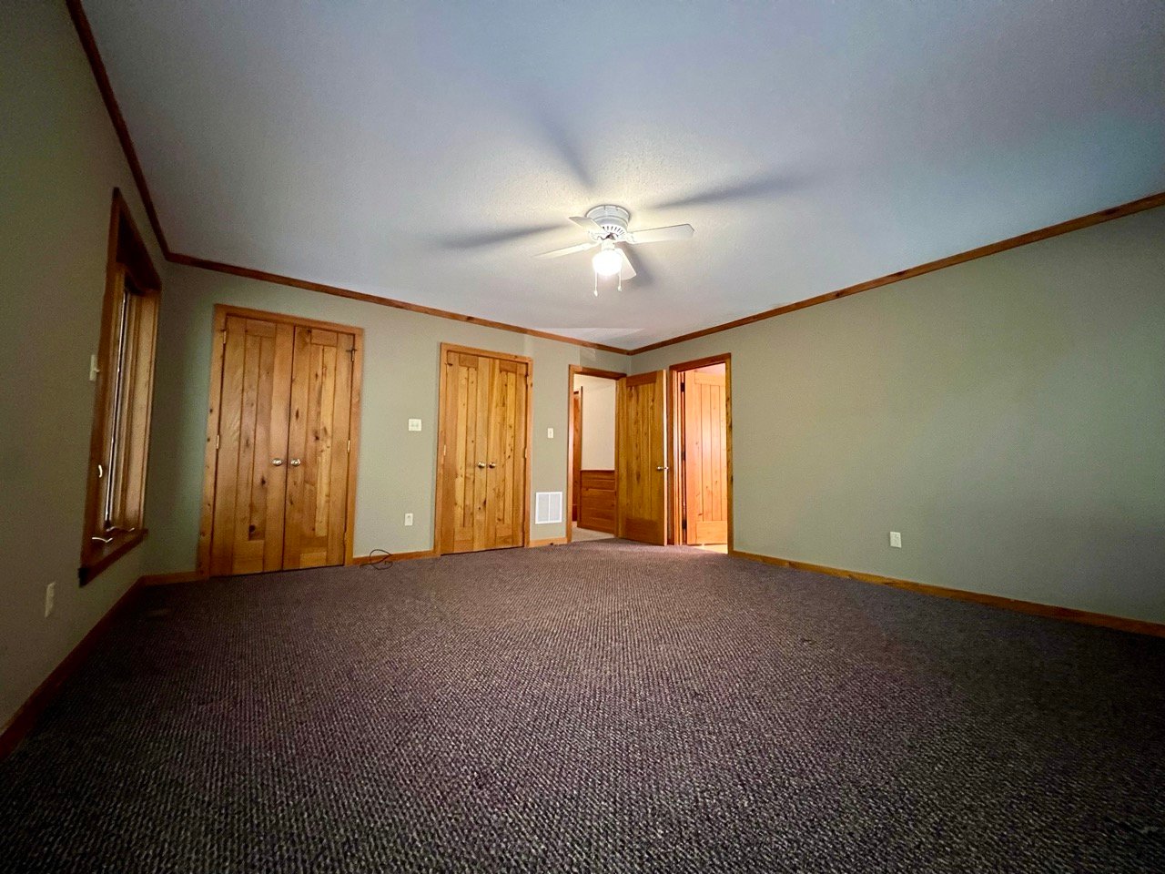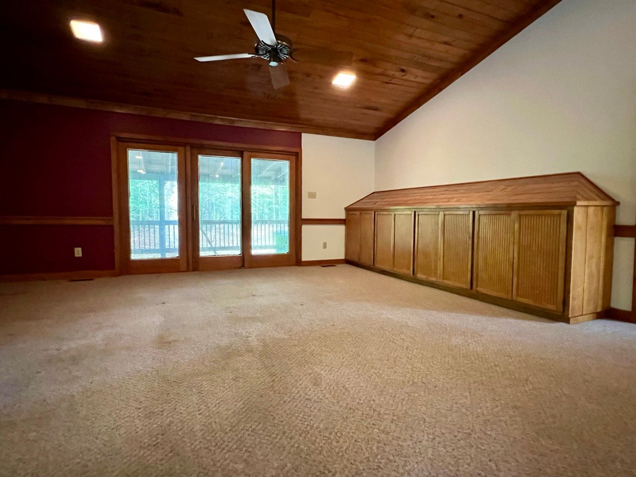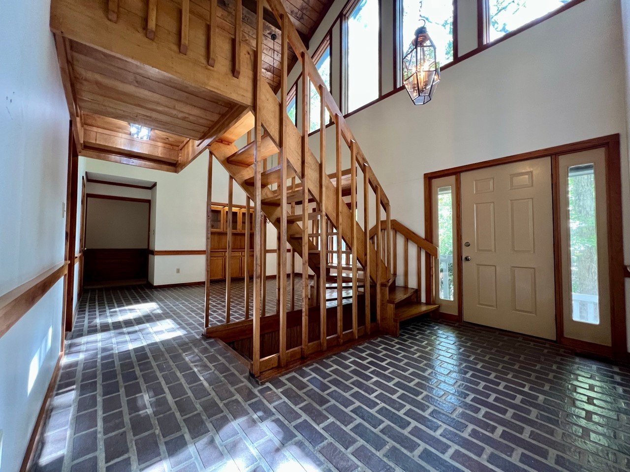 Unmatched opportunity here at 443 Gatewood Dr. upon entering you are greeted by over 5 acres of mature trees along with rolling hills. Following the circle drive around you will find a stunning 1983 two story home with a partially finished basement, totaling just over 4000 square feet. Parking is a breeze with a 3 car garage underneath the house with a fourth just outside the main wall. As you enter the home you are welcomed by a vaulted ceiling covered in timeless wood along with natural wooden steps leading to the second floor. Just around the corner you will find craftsmanship at its finest with a one of a kind 6 sided fireplace to stay nice and cozy on those cool evenings. The living room also has solid wood built-ins along two walls and a vaulted solid wood ceiling with a breath taking view in all directions. Rest anytime on the back covered deck with a sweeping panoramic view and enjoy all that nature has to offer. Daily cooking and entertaining are made easy with a large kitchen island equipped with a full stove on one side and a full cook top on the other. Storage is no question with a walk in pantry. Passing through the dining room where meals become memories to head upstairs to a great room for a great view. Enjoy an escape from the rush of today on the private balcony over looking the secluded yet accessible property. Retire for the evening to the master suite on the rear of the house with large closets and a full private bathroom. The other two bedrooms on the main floor are joined by a full bathroom with a custom spiral staircase between them from the hall side that leads to the basement. Heading back through the dining room down to the basement you will be greeted by a large bonus room with a flex room and office connected to it. The basement also features a full bathroom making the space a true canvas for your masterpiece.Access the workshop from the finished basement. Keep your tools and crafts safe and dry.